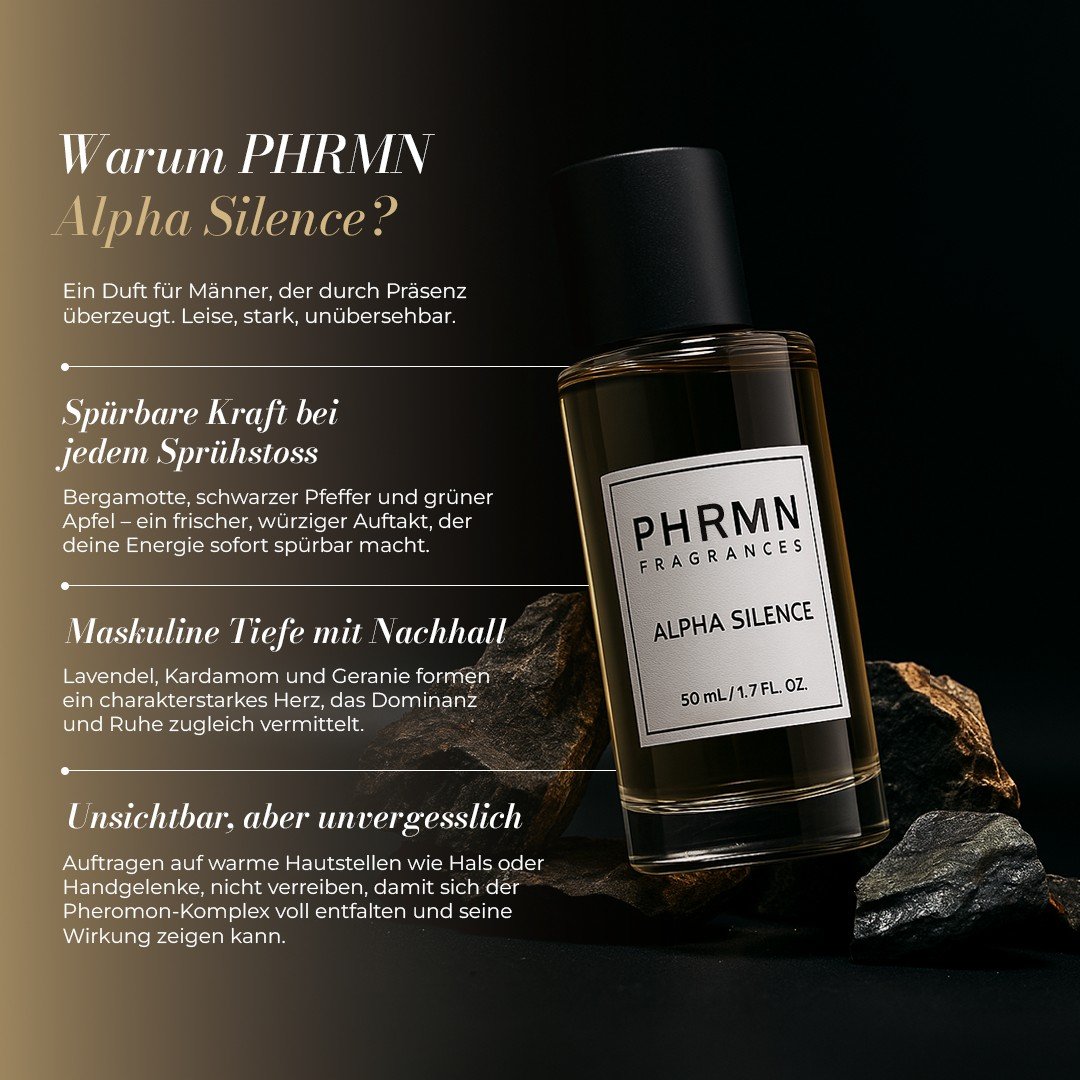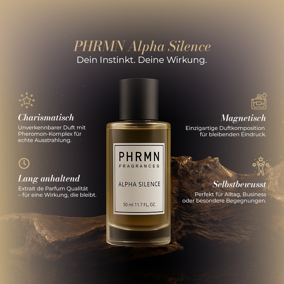 „PHRMN ALPHA SILENCE – Für Männer, die nicht um Aufmerksamkeit bitten, sondern sie bekommen.“